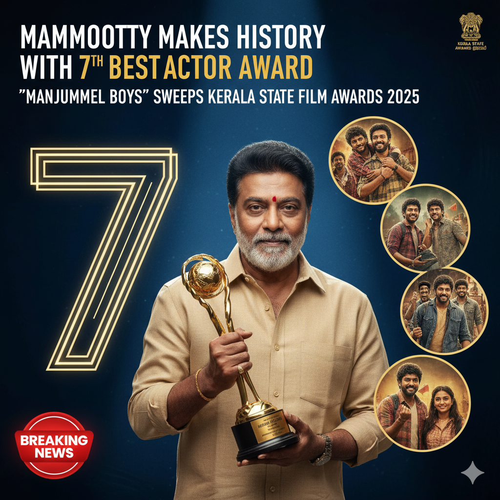 In a night that celebrated the brilliance of Malayalam cinema, the 55th Kerala State Film Awards 2025 honoured outstanding talent  and one legend in particular made headlines. Veteran actor Mammootty claimed the Best Actor trophy for his role in the film Bramayugam, setting a new record with a seventh win in this category. Meanwhile, the film Manjummel Boys emerged as the evening’s biggest winner, taking home several major awards.