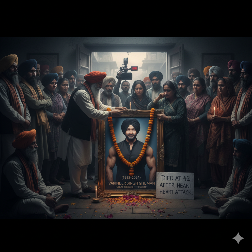The Punjabi film and fitness community is reeling from the sudden death of Varinder Singh Ghuman, a celebrated bodybuilder and actor who passed away at the age of 42. Ghuman, known for his massive physique and humble nature, reportedly suffered a heart attack during medical treatment in Amritsar on Thursday, leaving fans and friends across the world in deep shock.